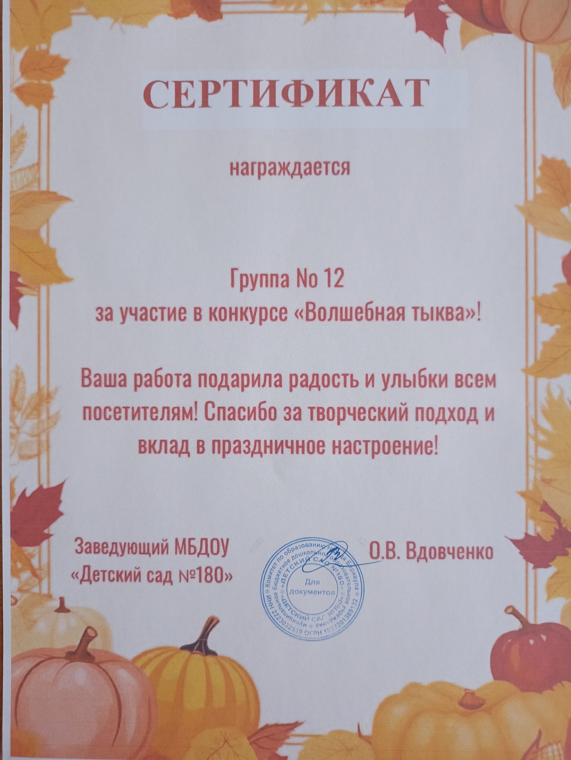 Конкурс “Волшебная тыква” сайт18 ноября, 2025 Новости группы № 12 Комментариев нет В нашем саду проходил конкурс “Волшебная тыква” Наша группа получила Сертификат за участие! ← Выставки поделок и рисунков “Огонь -друг,огонь -враг” и “Осенние картины” Прогулка → Добавить комментарий Отменить ответВаш адрес email не будет опубликован. Обязательные поля помечены *Комментарий Имя * Email * Сайт Δ Этот сайт использует Akismet для борьбы со спамом. Узнайте, как обрабатываются ваши данные комментариев.