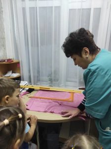 Сегодня мы были в гостях у нашей кастелянши -Любовь Анатольевны.Познакомились с ее обязанностями, предметами, помогающими ей в работе. Все остались очень довольны!
