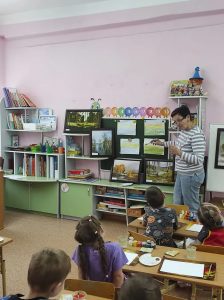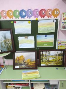 В рамках проекта “Картинная галерея ” ребята познакомились с жанром пейзажа на полотнах Саврасова А.К “Лес в инее “; Волков Е.Е. “Осень”; Васильева Ф.А “Мокрый луг”, “Перед дождем”;