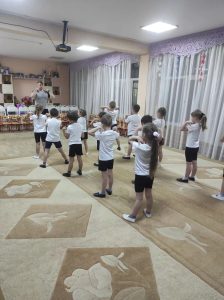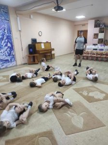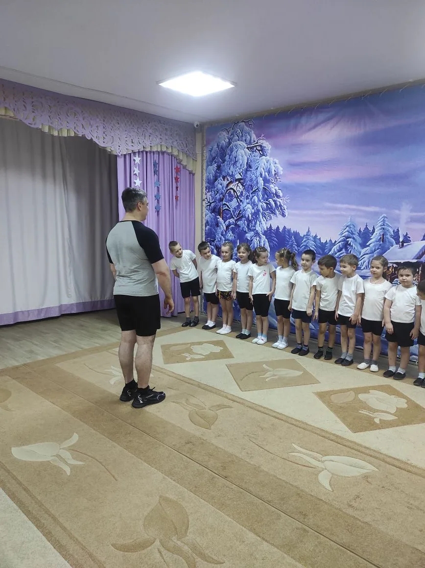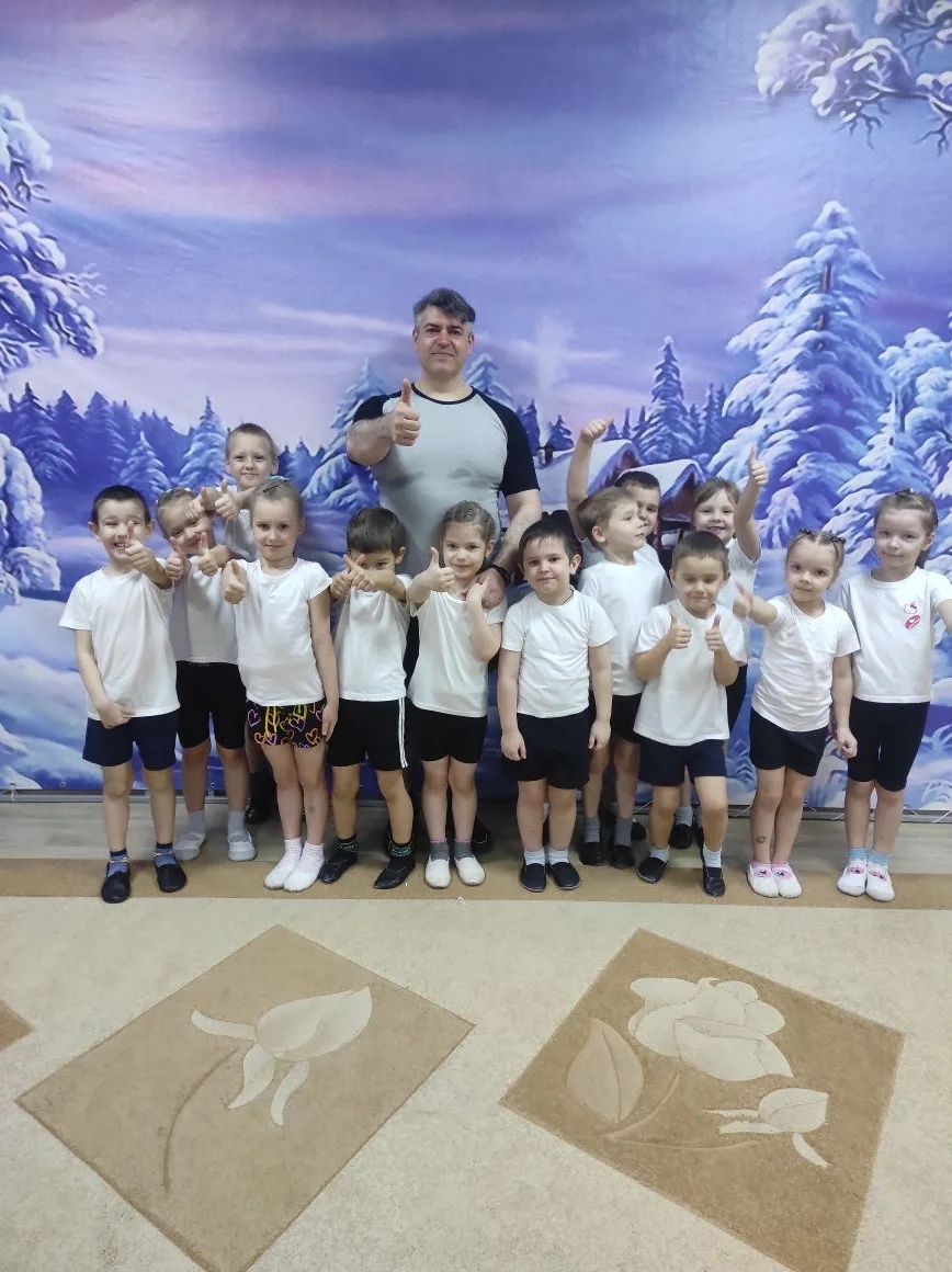 В рамках спортивного проекта «Быть здоровыми хотим!» к нам в гости пришёл папа одного из ребят, чтобы провести для детей весёлую зарядку.