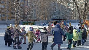 Мы с ребятами отправились в виртуальное путешествие по картине «Масленица» Б. Кустодиева. Ребята рассматривали мельчайшие детали: сани с колокольчиками, разноцветный снег, весёлых людей. “А почему у художника снег розовый?” — спросил кто-то. “Потому что праздник!” — ответили мы. И правда, от картины так и веет радостью! Вдохновившись яркими красками, дети взяли в руки карандаши, восковые мелки . Каждый нарисовал своё масленичное солнышко: у кого-то оно с кудряшками, у кого-то — с веснушками, а у кого-то — похожее на блин! Получилось очень по-домашнему тепло. А завершили день мы гуляньями! Мы и сами стали героями картины: Дети водили хороводы, соревновались в молодецких забавах: «Перетягивание каната», «Кто быстрее на коне», водили хоровод с песней «Ой, блины, блины», рассказывали стихи, отгадывали загадки, играли в весёлые народные игры. Веселые конкурсы не давали скучать ни кому! Звонкие песни и задорный смех не смолкали ни на минуту.