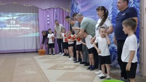 Папы показали настоящую богатырскую силу! эстафеты с препятствиями, метание «гранат» и полоса препятствий — никто не остался в стороне. Задания выполнялись дружно, плечом к плечу. Папы учили ребят быть ловкими, быстрыми и, главное, — поддерживать друг друга. Счастливые глаза детей, гордые улыбки пап, громкие аплодисменты болельщиков — всё это создало неповторимую атмосферу настоящего праздника. Самым трогательным моментом стало вручение подарков, которые дети приготовили своими руками. Папы улыбались, но в глазах многих блестели слёзы…
