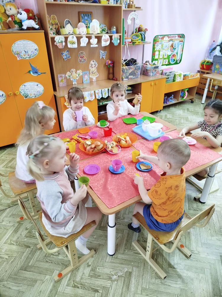 Сегодня в нашей группе произошло настоящее волшебство — к ребятам в гости пришёл очаровательный Мишка! Вместе с ним малыши устроили уютное чаепитие — весёлое, доброе и очень вкусное.