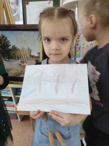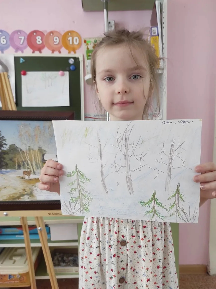 В рамках проекта “Картинная галерея” в старшей группе прошло увлекательное занятие, где искусство встретилось с речью, а наблюдение -с творчеством. Мы познакомились с картиной Исаака Ильича Левитана «Март».
