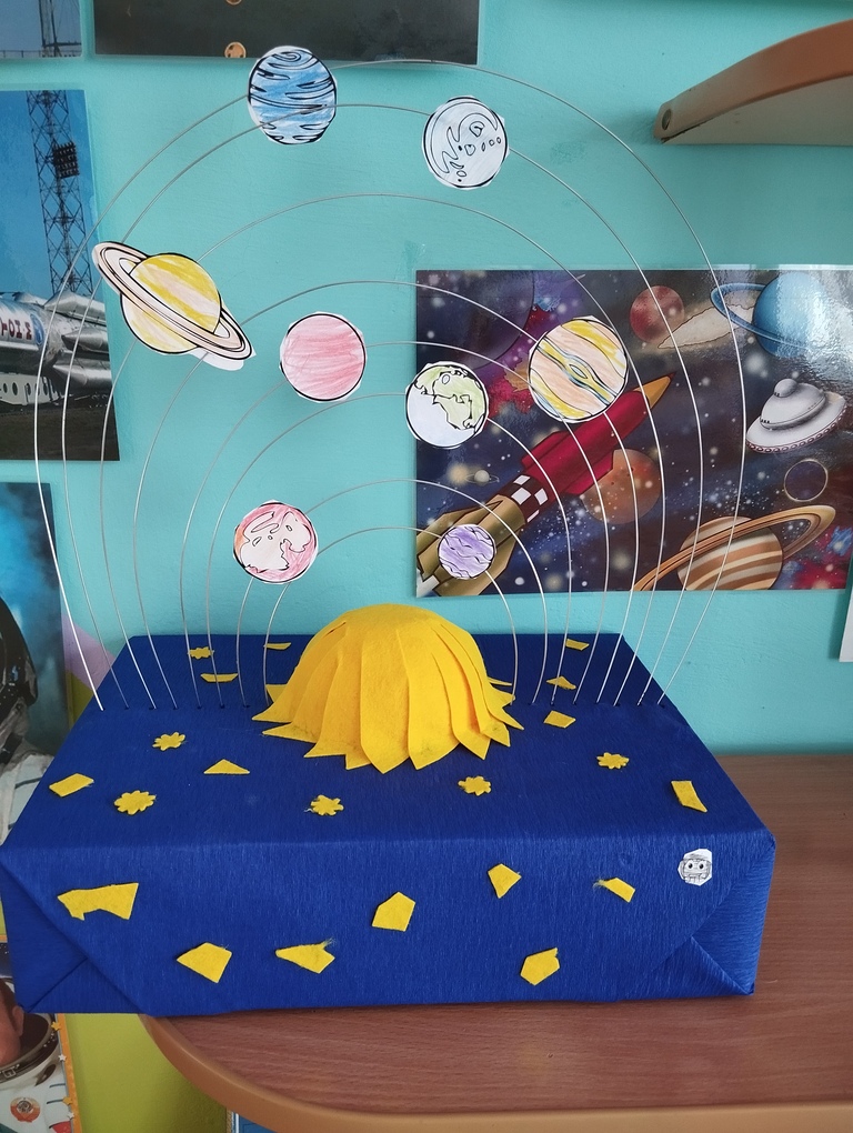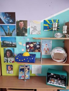 Неделя космоса в старшей группе прошла плодотворно. Дети в группе оформили уголок «Космос». Родители рисовали рисунки и сделали вместе с детьми коллективную работу “Наш дом — Галактика”