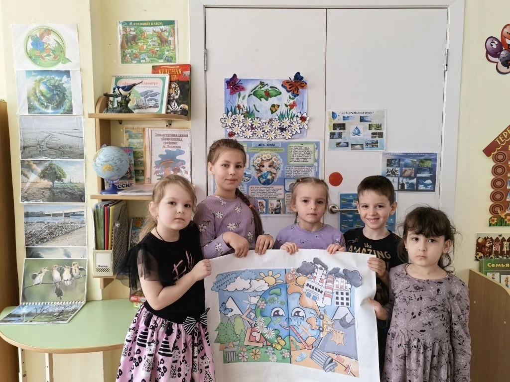 Воспитатели провели с ребятами интересные и познавательные беседы. Дети узнали, почему Землю называют «голубой планетой», как важно беречь леса, реки и животных, а также как каждый из нас может помочь природе — например, не мусорить, сажать цветы и экономить воду. Ребята с восторгом делились своими мыслями о том, что они уже делают для защиты природы.