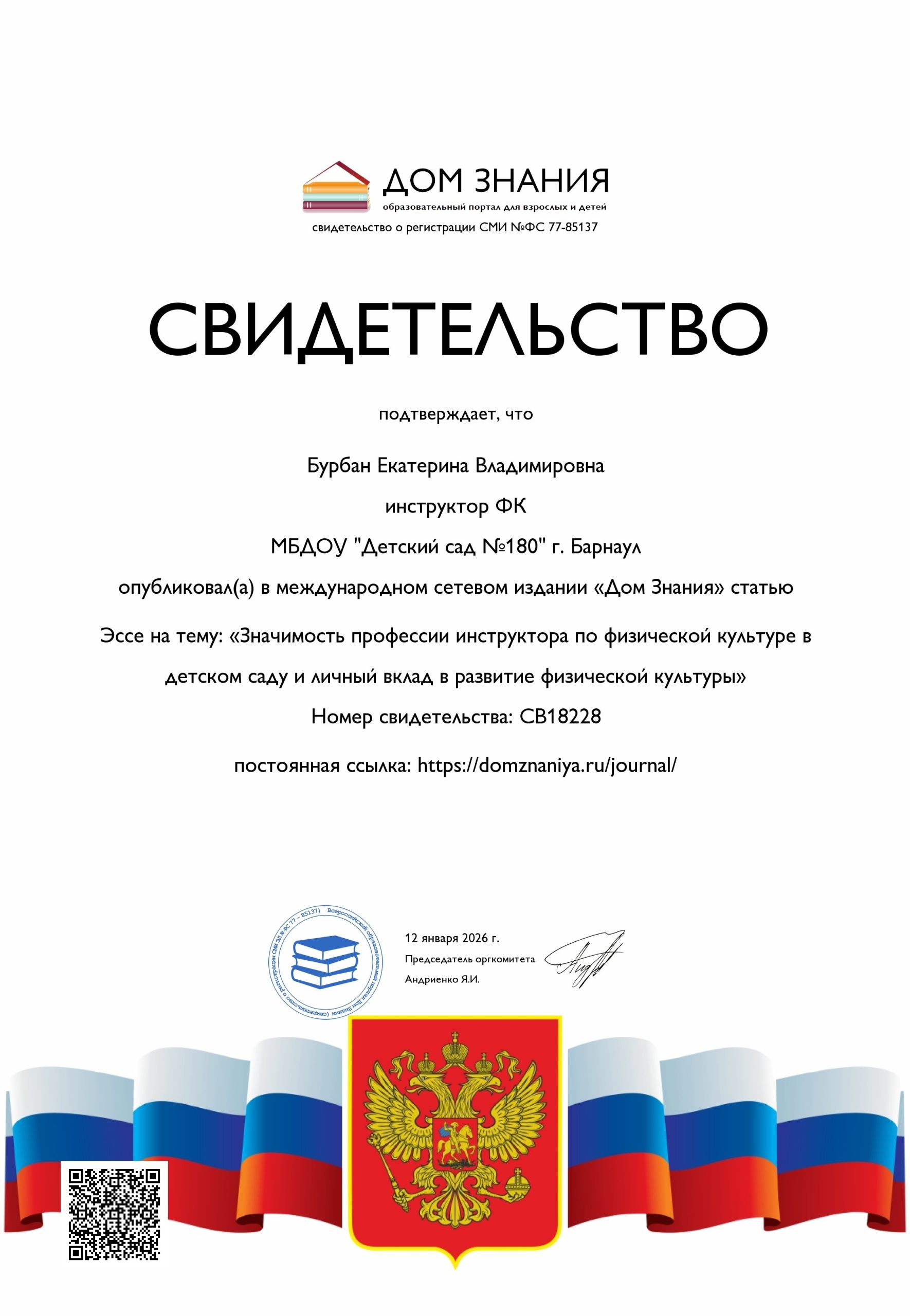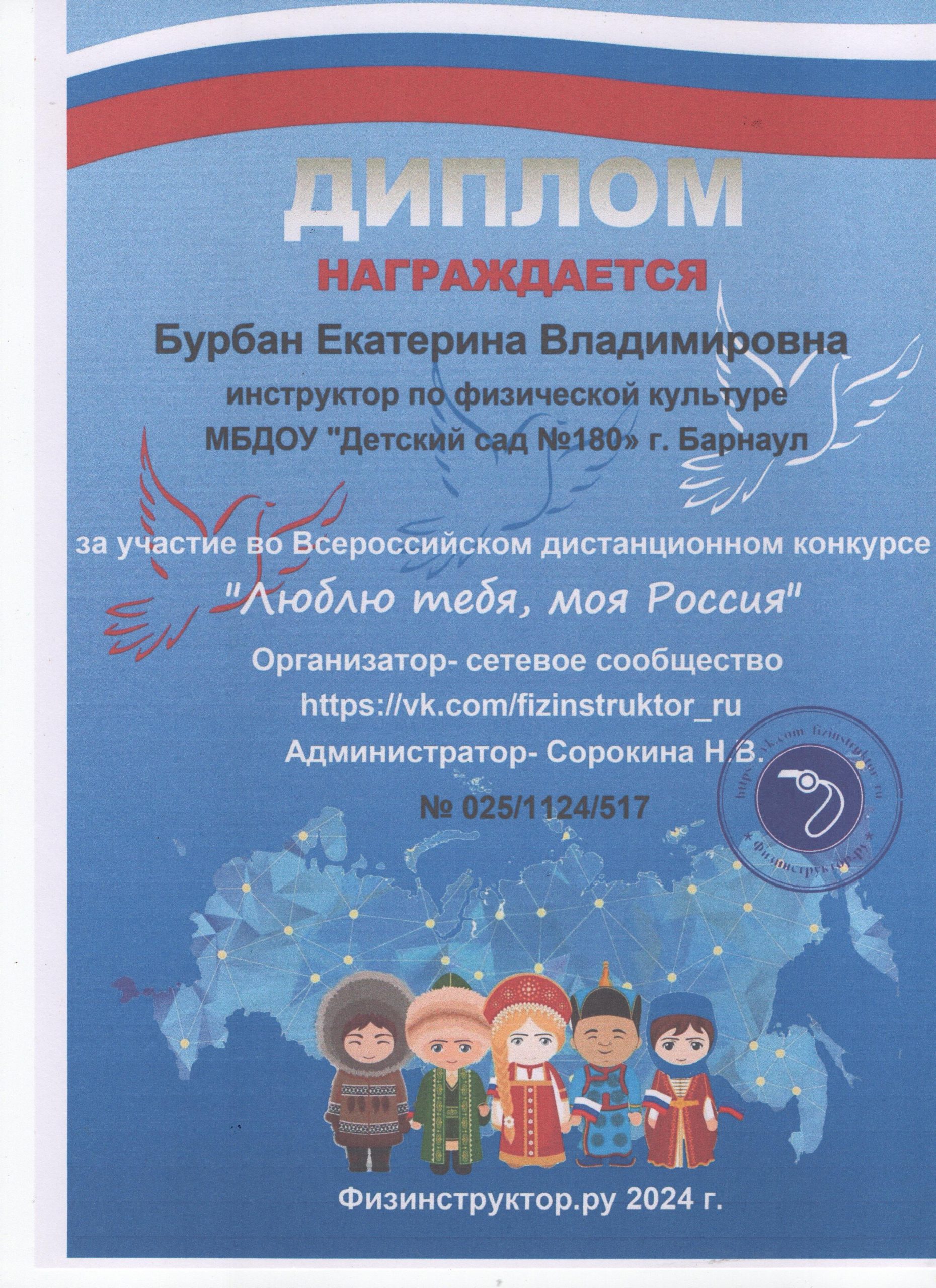 Профессиональная переподготовка: ООО Центр повышения квалификации «Луч знаний», 2024, 300ч. «Инструктор по физической культуре »